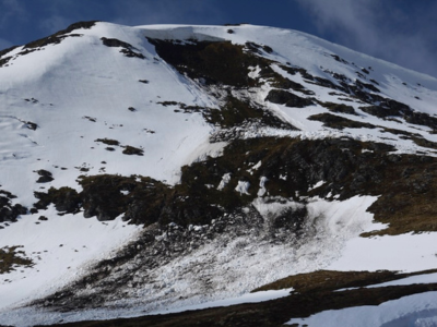 During periods of thaw, it important to consider what is above you; wet snow avalanches and cornices can collapse causing significant hazards lower down.